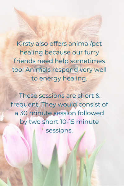 Each healing session lasts approximately 1-2 hours (dependent on which session you are having), Kirsty will arrange a time with you once you have booked your session.
